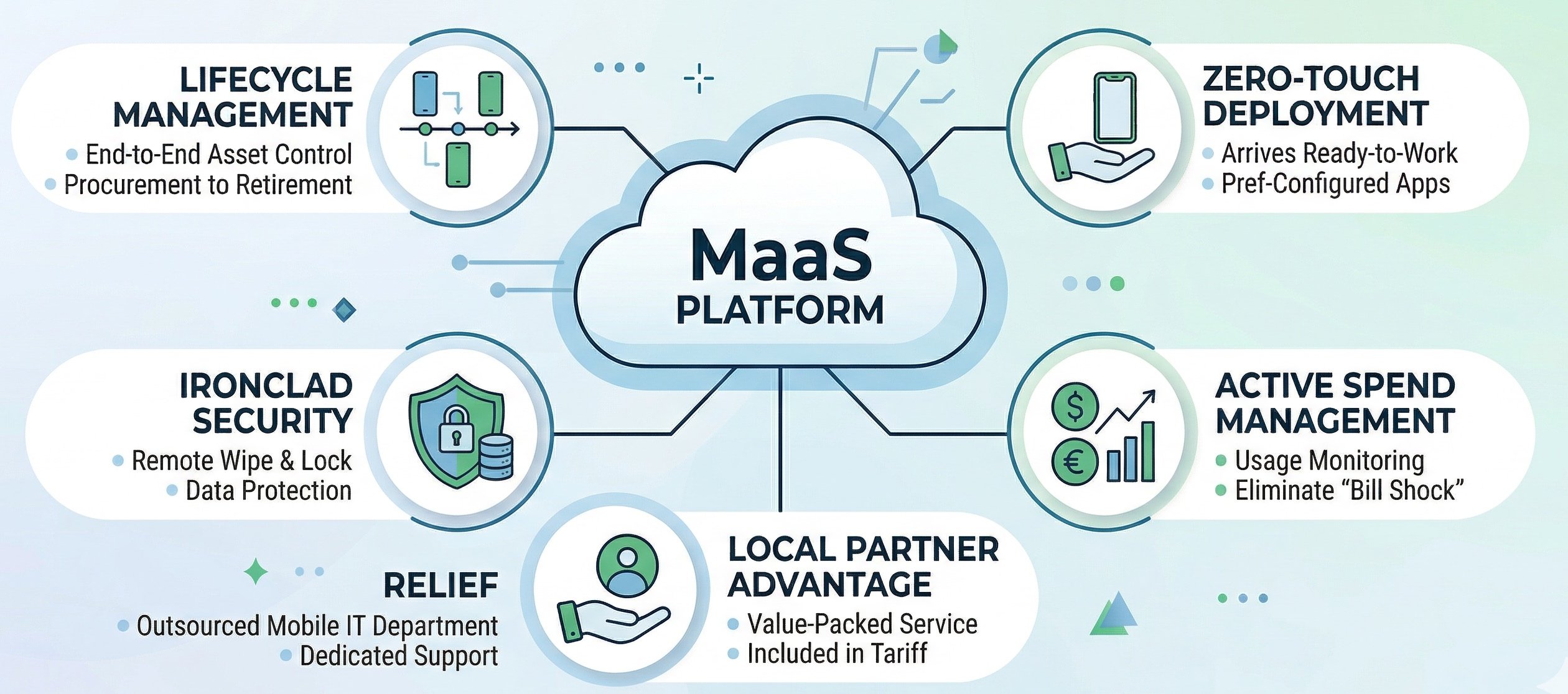 - Total Peace of Mind: MaaS acts as your outsourced mobile IT department. From dealing with broken screens to handling network outages, the burden is entirely on the partner, not your internal team.